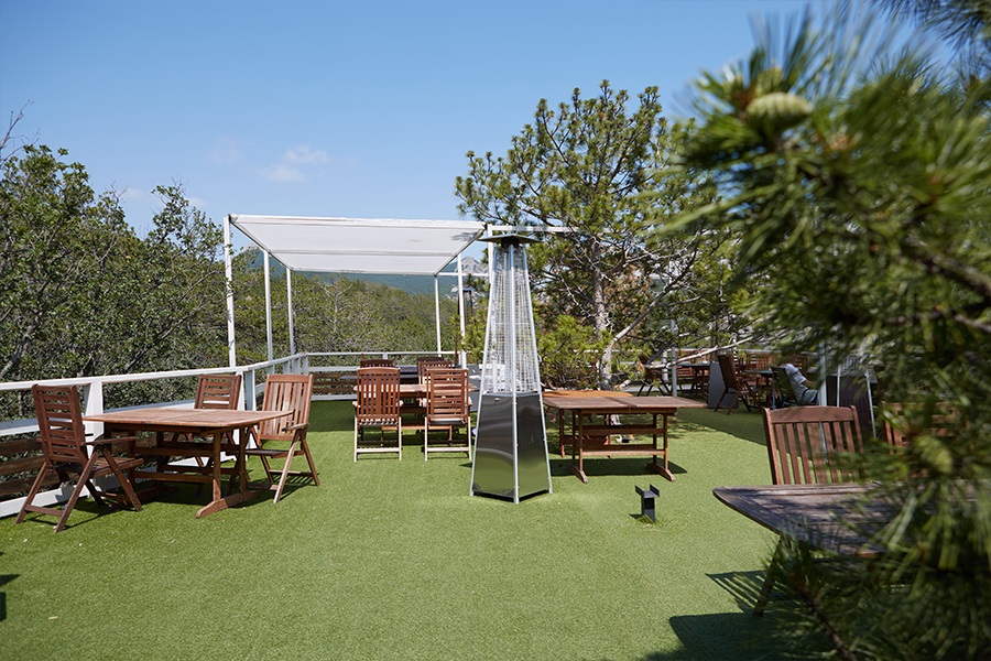 Расположен в уединенном месте среди скал и хвойного леса. С отрытой террасы открывается изумительная панорама на скалы, лес и море. Идеальное место для романтического вечера: живописный вид, живая музыка и вкусная еда. Такие вечера останутся в вашей памяти навсегда! На территории есть небольшой контактный зоопарк с животными – они подарят незабываемые эмоции детям и взрослым.